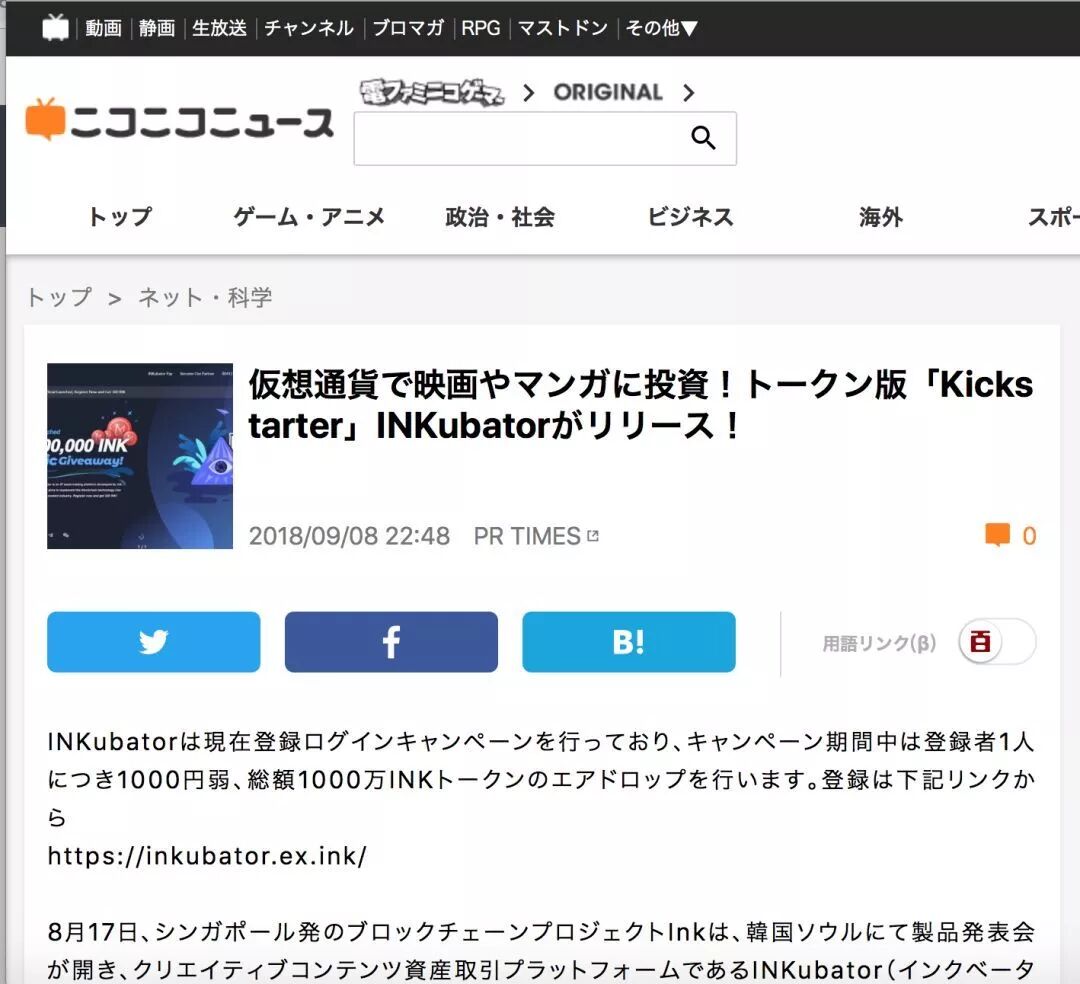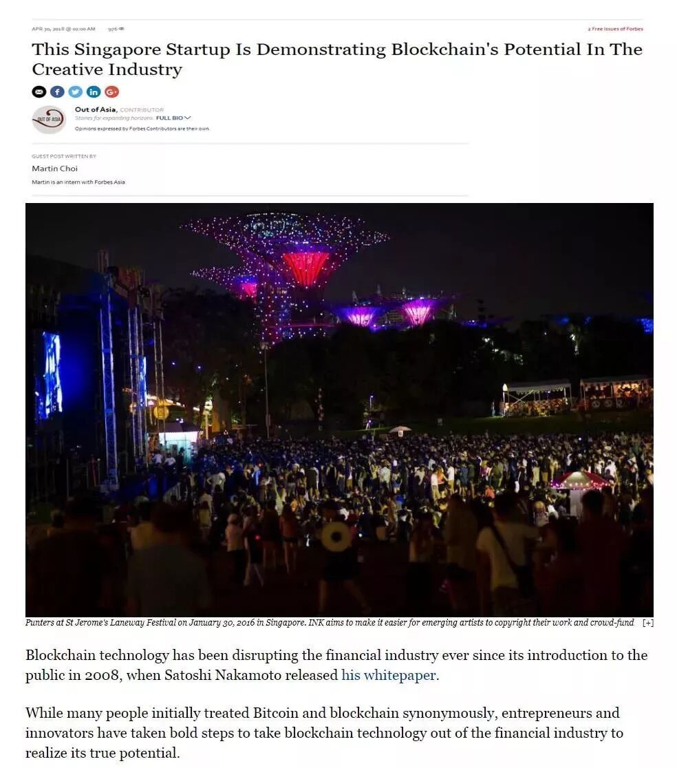 2018년 4월 포브스는 Ink를 다각도로 심층 분석하여 글로벌 크리에이티브 산업에 대한 Ink의 높은 미래 기여를 인정했다.