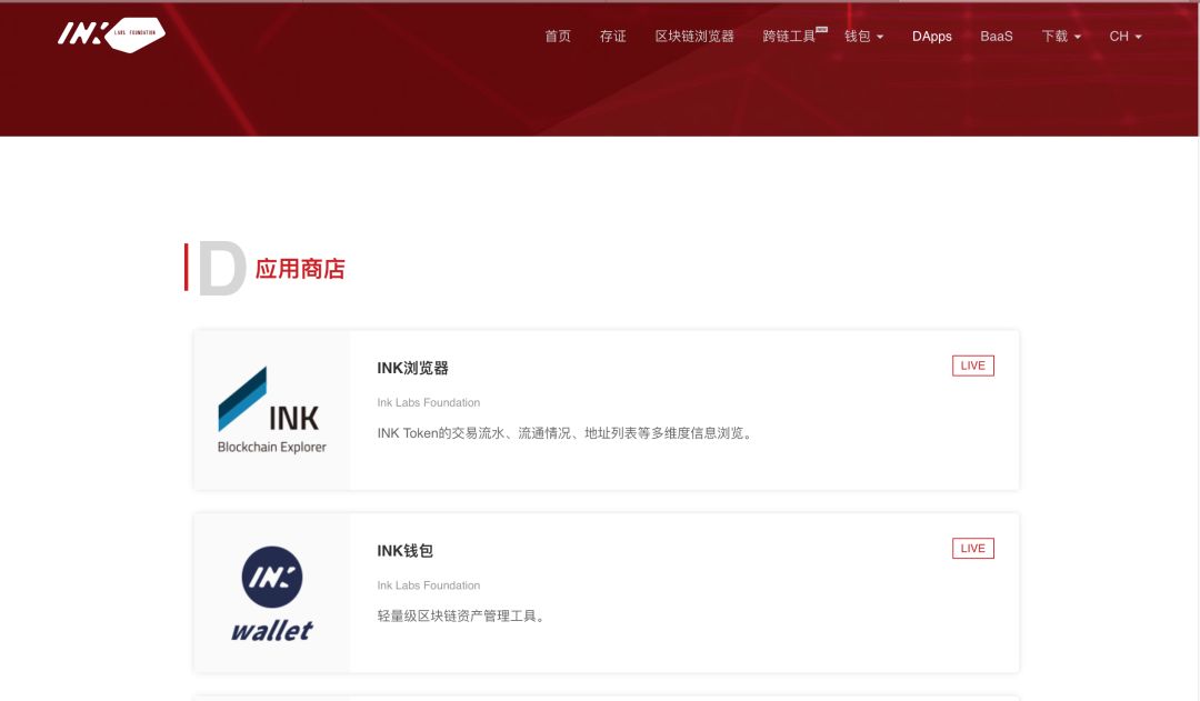 2018년 3월, INK DApps 댑스토어가 공식 홈페이지에서 출시되었으며,