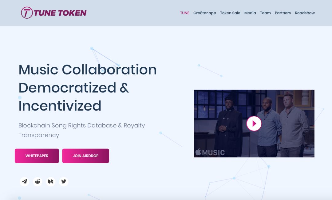 Tune은 그래미 올스타 팀이 내놓은 블록체인 음악 판권 프로그램으로 음악계의 판권 불투명 문제를 해결하고 틈새 없이 음악 창작의 꿈을 품은 창작 프로젝트입니다.